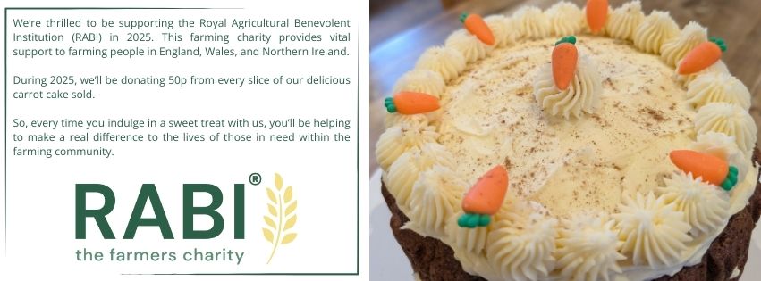 Our seasonal menus have a delicious selection of breakfasts and lunches, or you may prefer a slice of homemade cake and a cup of our locally roasted Fairtrade barista coffee!